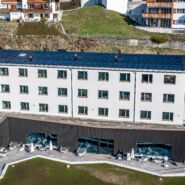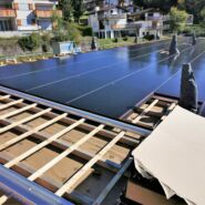 Eine geringe Dachneigung stellt besonders hohe Ansprüche an die Indach-Systeme. So garantieren die meisten Systeme ein Dichtheit nur bis zu einer Neigung zwischen 15 – 20°. Das Dach des Wellness Hostels in Laax verfügt über eine geringere Dachneigung und stellte uns vor einer gewissen Herausforderung.