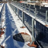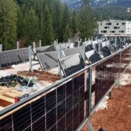 Eine weitere Möglichkeit besteht darin die PV Module vertikal in Fassaden zu integrieren oder wie in diesem Projekt gar vertikal auf das Dach anzubringen. Dadurch können bifaciale Module eingesetzt werden, welche auf beiden Seiten Strom produzieren und ausserdem noch die Schneereflexionen sehr gut umsetzen können.