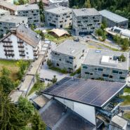 Die Talstation der Luftseilbahn Laax – Crap Sogn Gion, erwies sich als ein idealer Standort für eine dachintegrierte Photovoltaikanlage. Einerseits garantiert die Süd-Ostausrichtung und Dachneigung eine optimale Energieproduktion. Andererseits besteht am Standort auch im Sommer ein konstant hoher Energiebedarf.